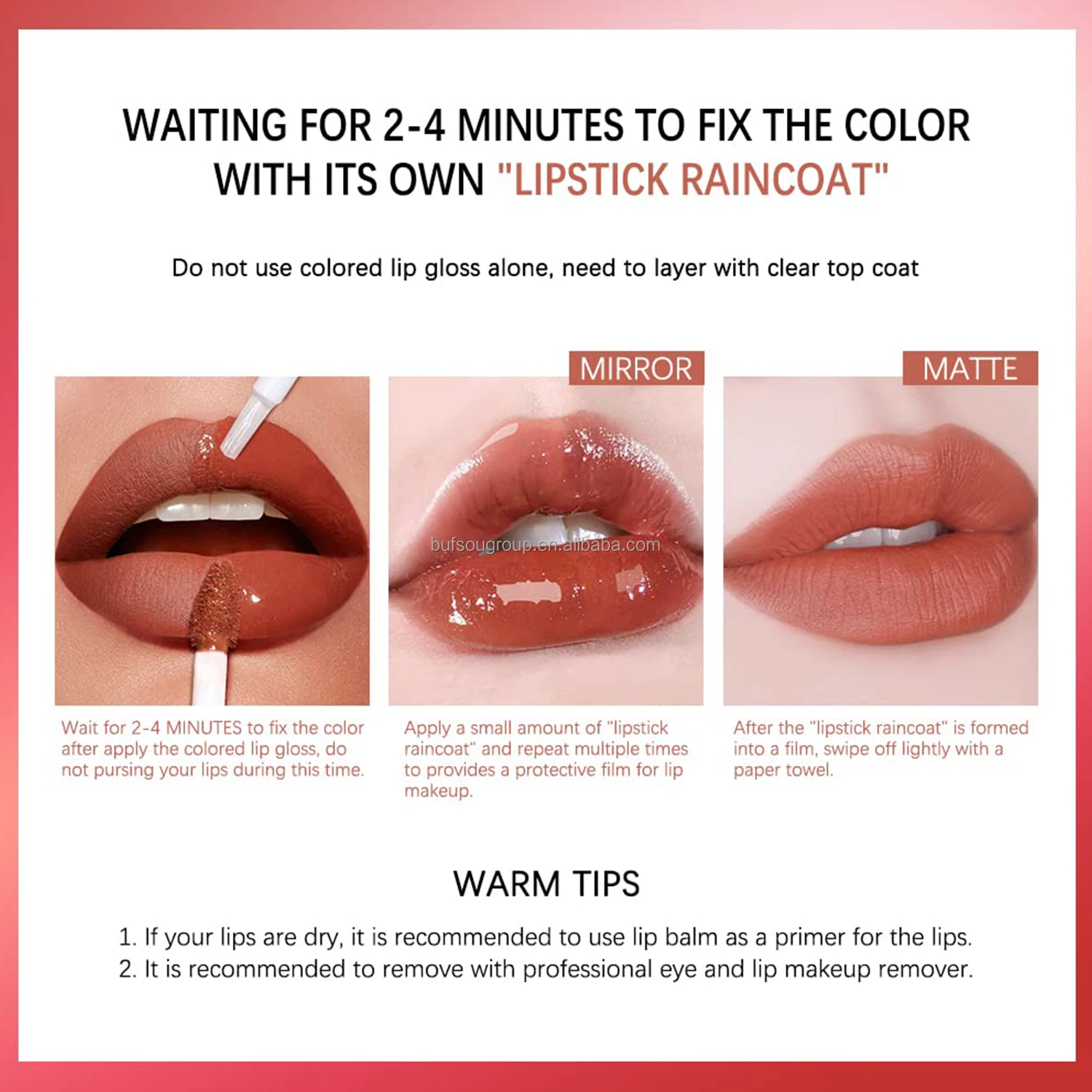 the original lip color on top of the transparent lipstick, to play a waterproof, non-decolor, non-sticky cup effect.